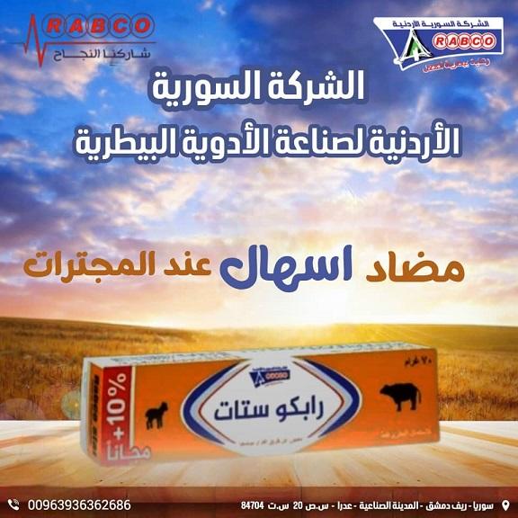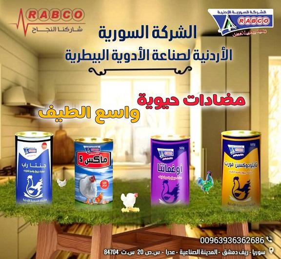 - Rabco produces approximately 500 preparations from various pharmaceutical categories and forms, all of exceptional quality and high efficacy, which supply the Syrian market and meet its needs, thus contributing to the preservation of livestock health in our beloved country.